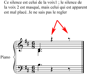 Une petite question : lorsque j'écris une partition à plusieurs voix sur une portée, je masque un silence pour ne pas avoir 3 silences en meme temps. Mon probleme, est que le silence est alors mal placé dans ma portée. Comment repositionner ce silence ?