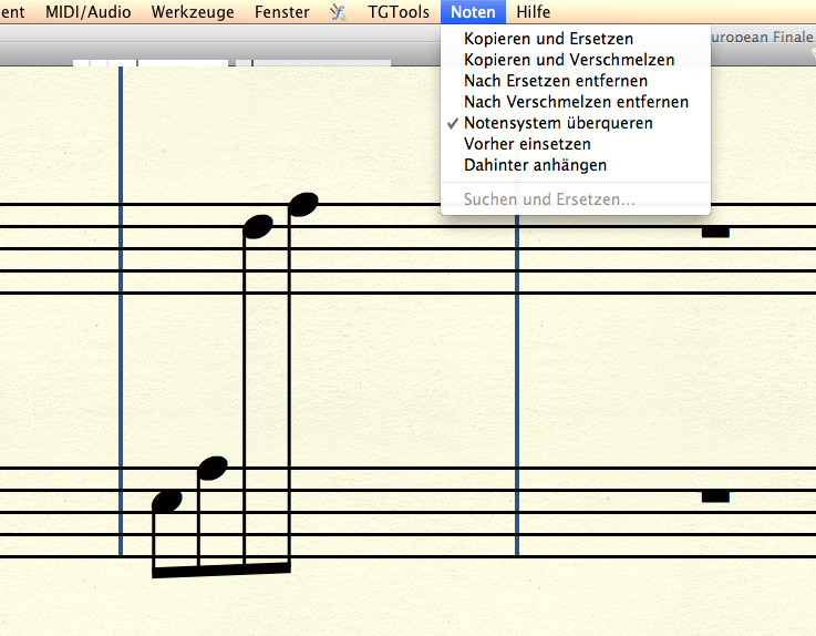 Habe eine Harfenstimme, die lauter Achtel spielt. Der Tonumfang wechselt aber ständig vom Bass-System zum Violin-System. Möchte deshalb gerne die Achtelnoten verbinden, sodass ich einen einzelnen Balken für beide Systeme erhalte. Geht das überhaupt?