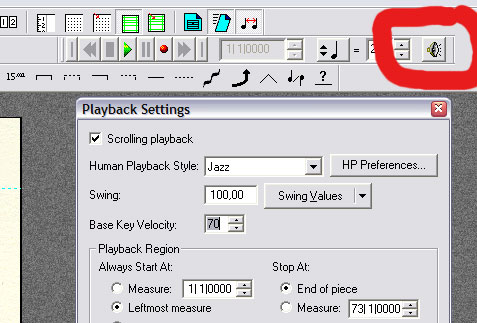 Tout dépend de ta version de Finale, si tu as une version pas trop ancienne, il faut utiliser le "human playback".