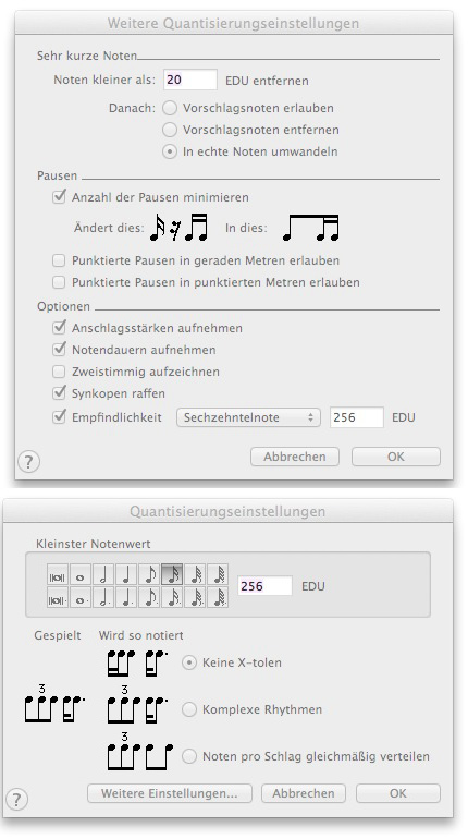 Ich kann zwar bei den diversen kryptischen Quantisierungseinstellungen rumprobieren, aber entweder beeinflußt das nur die Notation und nicht die MIDI-Daten, oder die MIDI-Daten werden krass auf den nächst größeren Notenwert "vereinfacht".