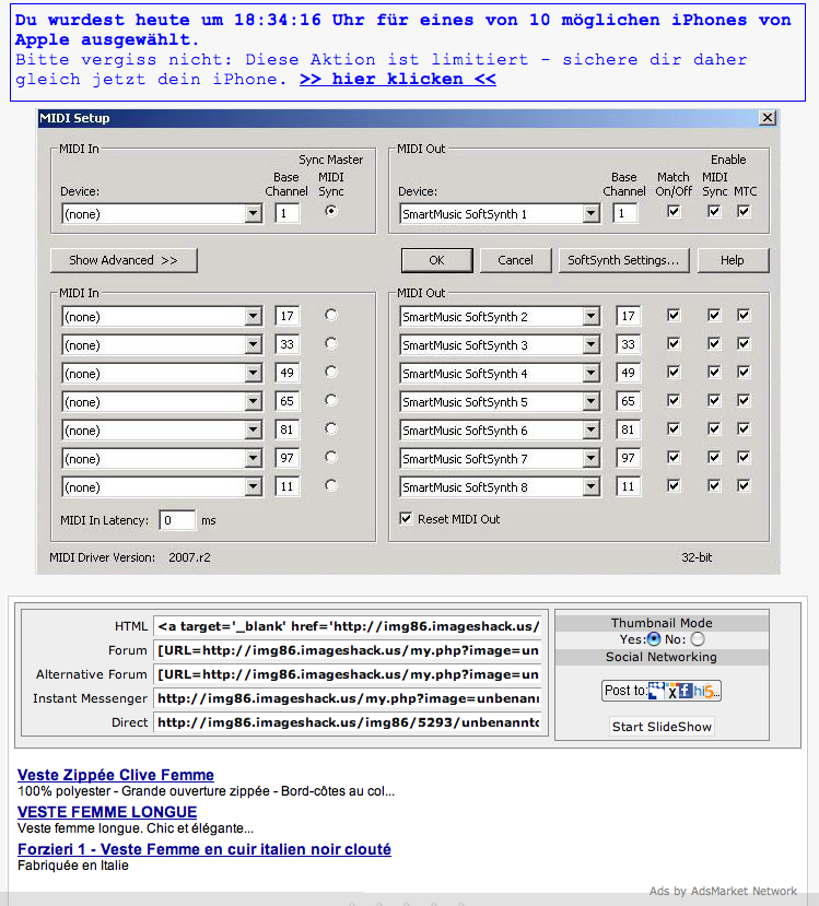 Ok. Ist es möglich, in Zukunft Bilder hier auf den Foren-Server zu stellen (als Anhang)? Ich zum Beispiel habe keine Lust, mir irgendwelche Werbung anschauen zu müssen ...