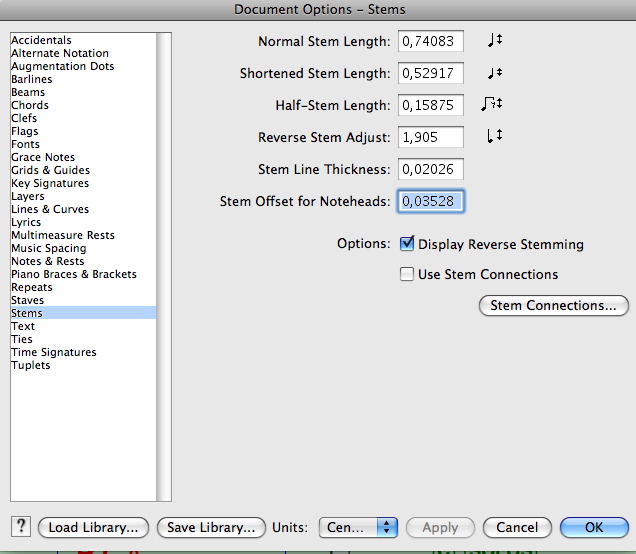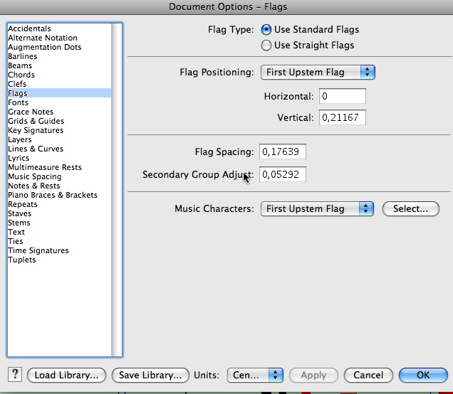 On peut régler soit les stems (hampes), soit les flags (crochets), ou les deux. Si cela se produit dans les nouveaux documents, il faut aussi sans doute aussi faire les modifications dans les default files ou templates pour éviter qu'ils ne réapparaissent dans les nouveaux documents.